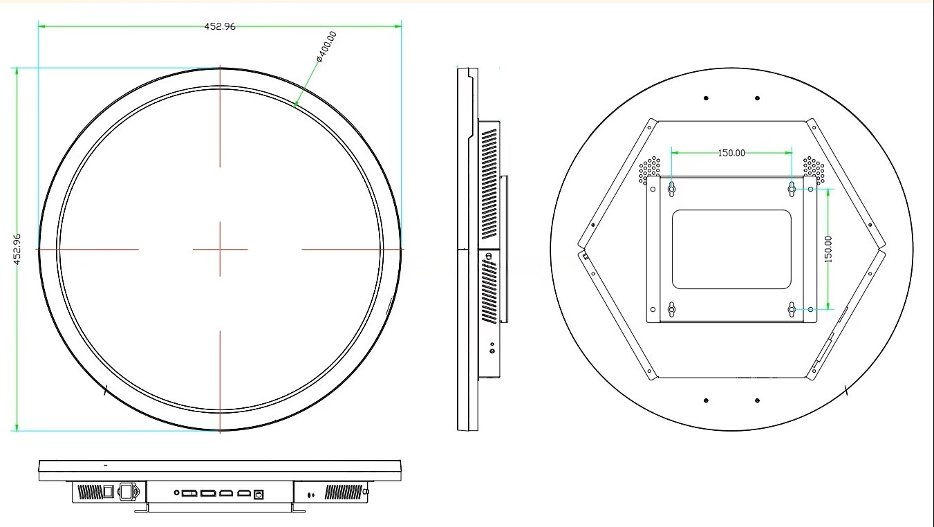 scáileán ciorclúil a dhocthar i gceannairí, soiléireacht ard 700 cd/m², P157RAN02_0, taispeántas 960×960 le haghaidh suiteála istigh i mbuailteoirí