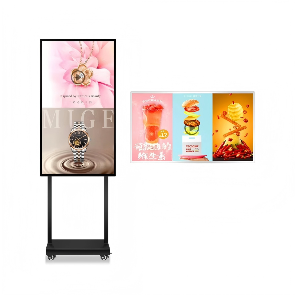 2. Pełna seria cyfrowych tablic informacyjnych: w tym wyświetlacze wiszące w oknach, wyświetlacze reklamowe montowane na ścianie, wyświetlacze reklamowe stojące na podłodze oraz modele na mobilnych wózkach – wszystkie obsługują funkcję dotykową.