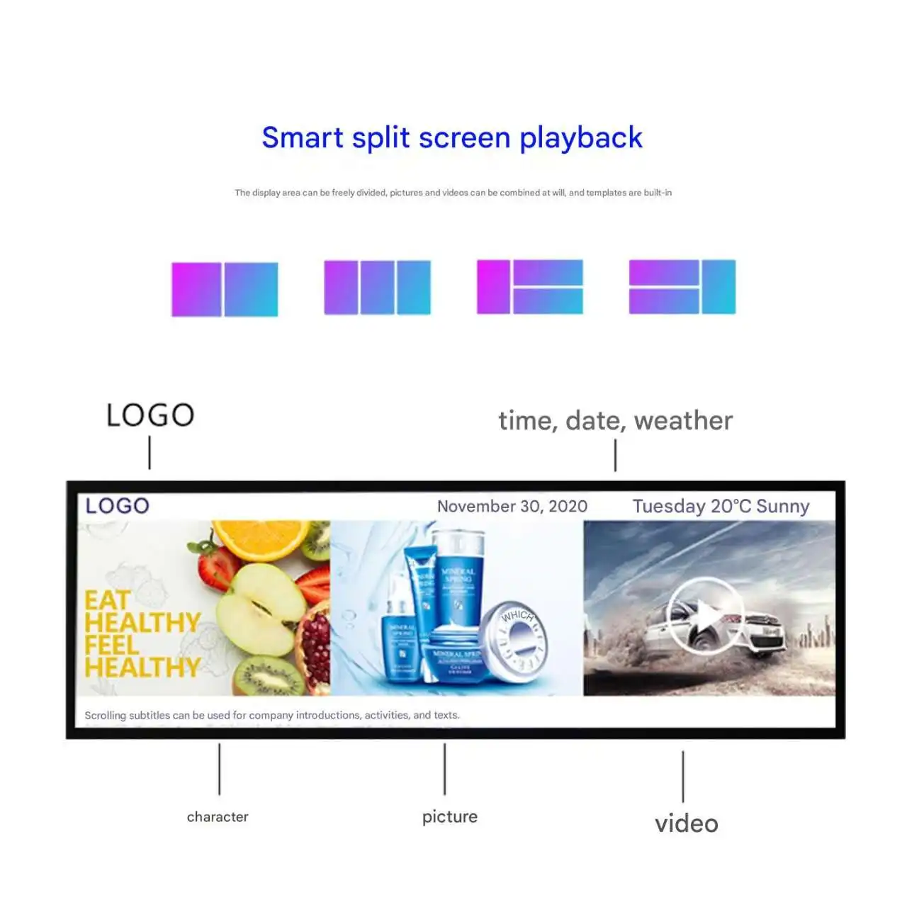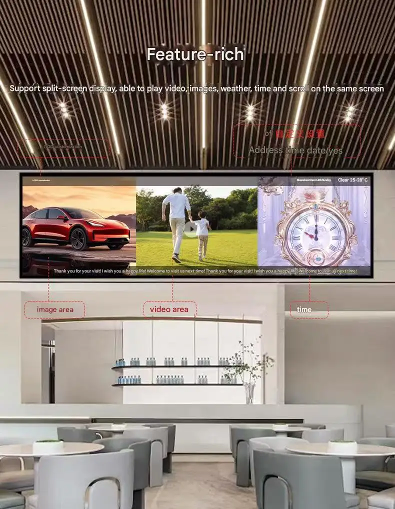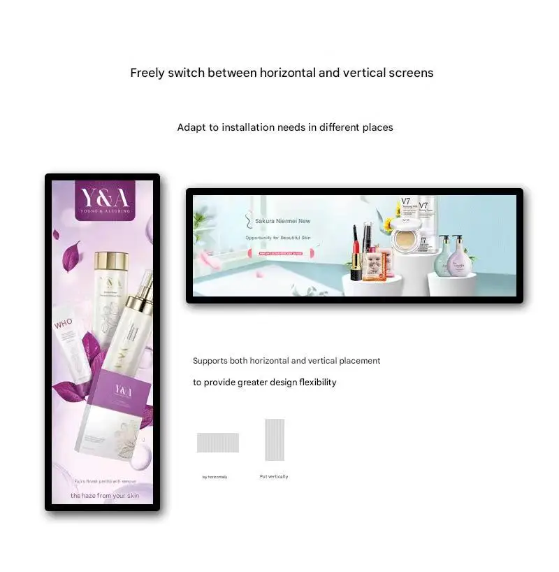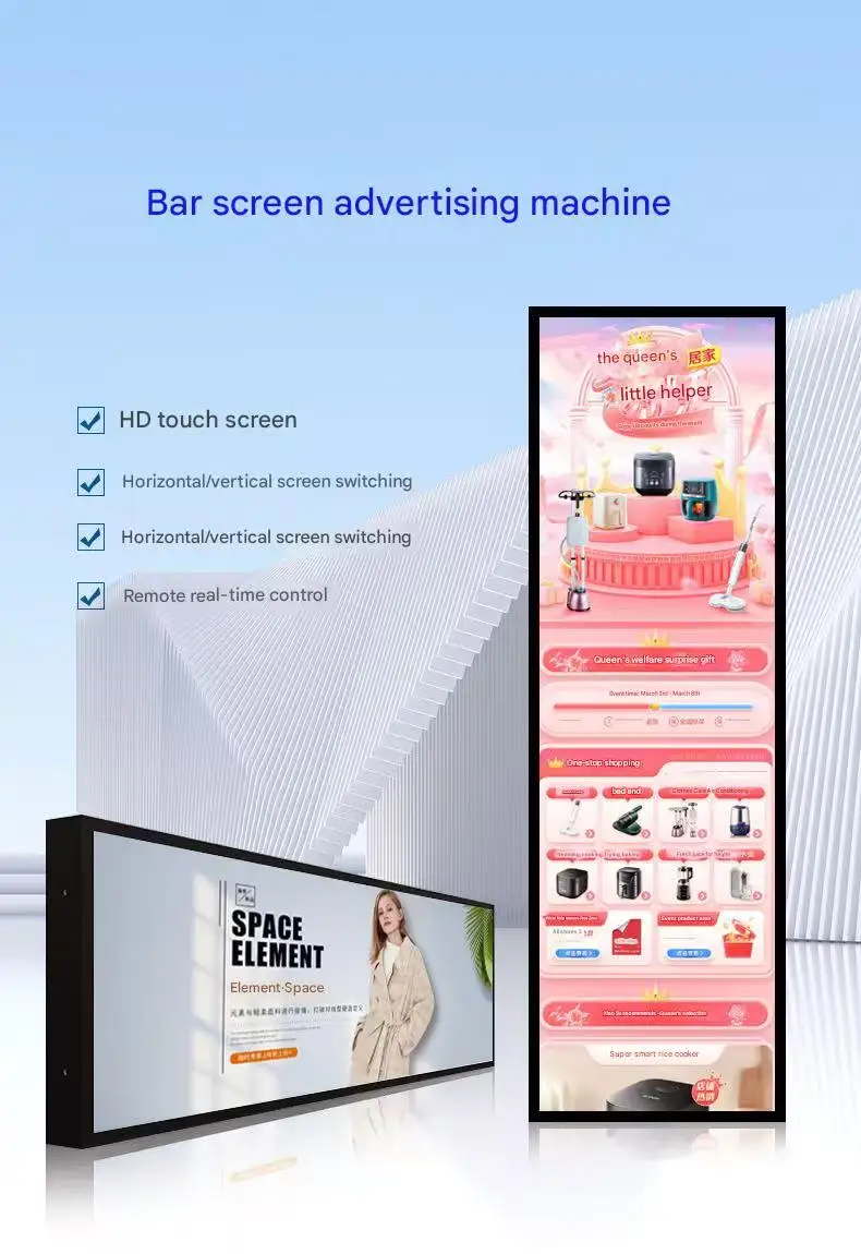2. Full Series Digital Signage: Including hanging window displays, wall-mounted advertising displays, floor-standing advertising displays and mobile cart models, all support touch function.
