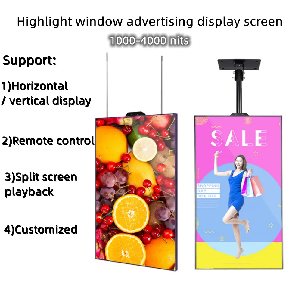 advertising display stand 2K4K 400-3000 NITS Hanging lcd advertising display high brightness lcd display