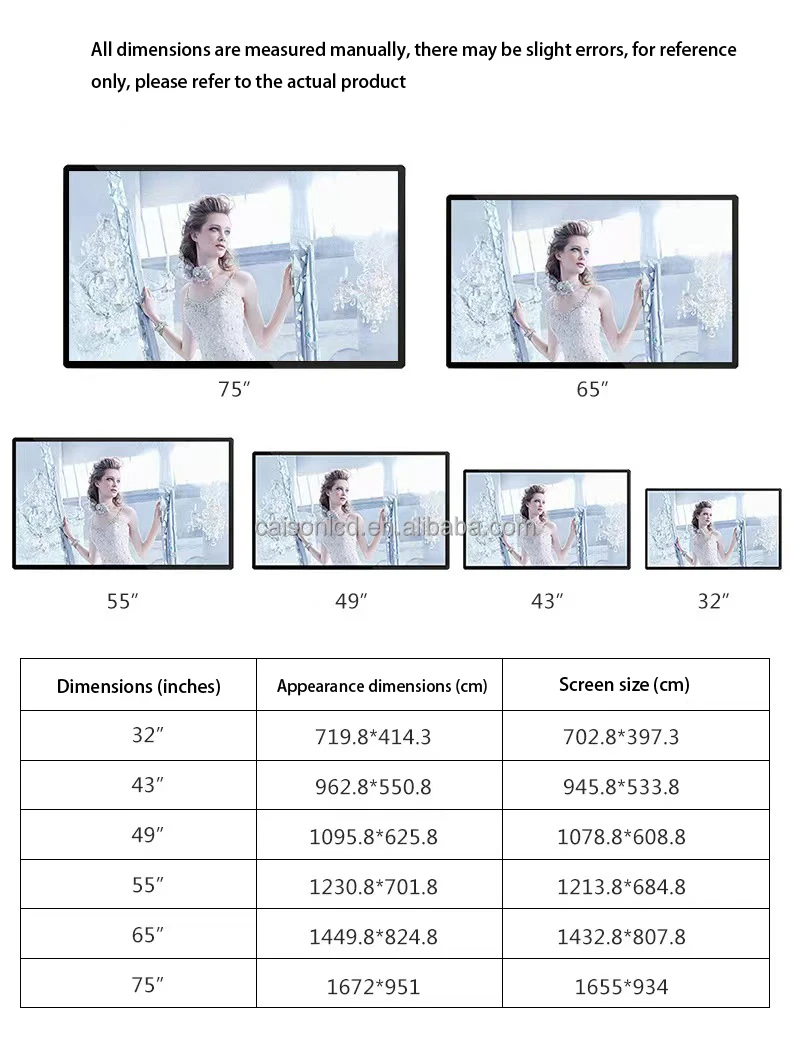 2. Full Series Digital Signage: Including hanging window displays, wall-mounted advertising displays, floor-standing advertising displays and mobile cart models, all support touch function.